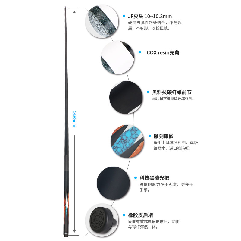 JSK-112F JF黑毒刺系列-准星 黑科技碳纤维小头杆中八黑八斯诺克台球杆
